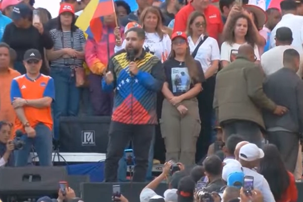 Maduro'nun oğlu Nicolas Maduro Guerra da, yürüyüşün bitiş noktasındaki ana sahnede hazır bulundu.