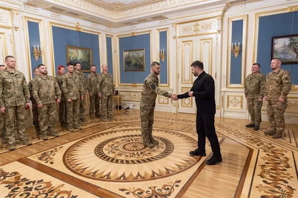Törende 2. ve 3. sınıf "Cesaret Nişanı", 3. sınıf Prenses Olga Nişanı ve Danylo Halytskyi Nişanı gibi devlet ödüllerini bizzat takdim eden Zelenski, "Ukrayna Savunma ve Güvenlik Güçlerini güçlendirdiğiniz, Ukrayna'nın toprak bütünlüğünü koruduğunuz, çeşitli alanlarda çalıştığınız, savaştığınız ve düşmanı yok ettiğiniz için teşekkür ederim” dedi.