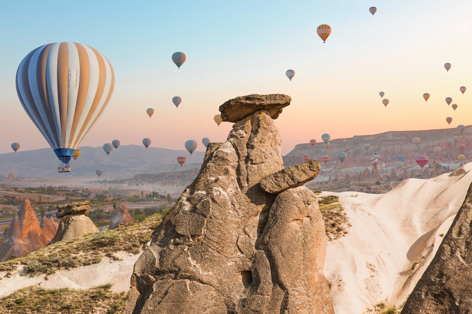 Göreme Tarihî Milli Parkı, Aşk Vadisi, Derinkuyu Yeraltı Şehri ve kaya kiliseleri gibi Kapadokya’nın simge noktalarını keşfedebilir, Avanos’ta çömlek yapımı atölyelerinde eğlenceli ve öğretici anlar yaşayabilirsiniz. Peri bacalarının arasında geçen dolu dolu bir günün ardından, yöresel lezzetlerin sunulduğu restoranlarda akşam yemeklerinin tadını çıkarabilir, Kapadokya gecelerini renklendiren müzikli ve danslı etkinliklerde keyifli anlar yaşayabilirsiniz.