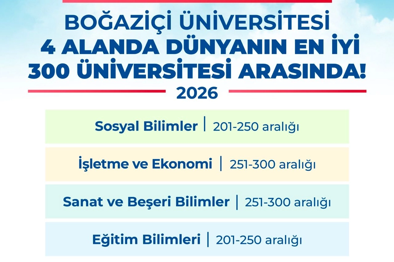 Boğaziçi Üniversitesi, dünyanın en saygın yükseköğretim derecelendirme kuruluşlarından Times Higher Education (THE) tarafından açıklanan 2026 Alan Bazlı Dünya Üniversite Sıralamalarında (World University Rankings by Subject) önemli bir başarıya imza attı. Üniversite; Eğitim ve Sosyal Bilimler alanlarında ilk 250, İşletme-Ekonomi ile Beşeri Bilimler alanlarında ise ilk 300 üniversite arasında yer aldı.