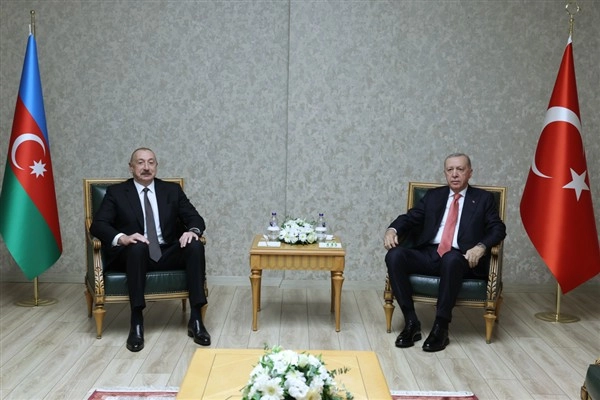 Cumhurbaşkanı Erdoğan, Azerbaycan Mahallesi'nde 250 Bininci Afet Konutu Anahtar Teslimi ve Kura Çekim Töreni'ne katılmak üzere Türkiye’de bulunan Azerbaycan Cumhurbaşkanı İlham Aliyev ile Kahramanmaraş Havalimanı’nda bir araya geldi.