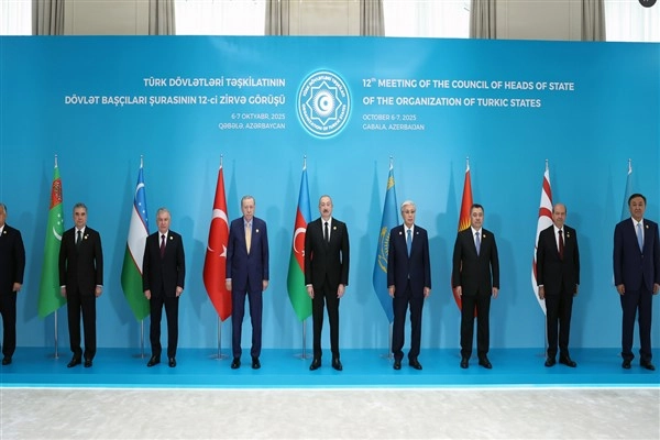 Azerbaycan Cumhurbaşkanı İlham Aliyev’in ev sahipliğinde, “Bölgesel Barış ve Güvenlik” temasıyla Gebele’de düzenlenen Türk Devletleri Teşkilatı 12. Zirvesi öncesinde liderler, Haydar Aliyev Kongre Merkezi’nde aile fotoğrafı için bir araya geldi.