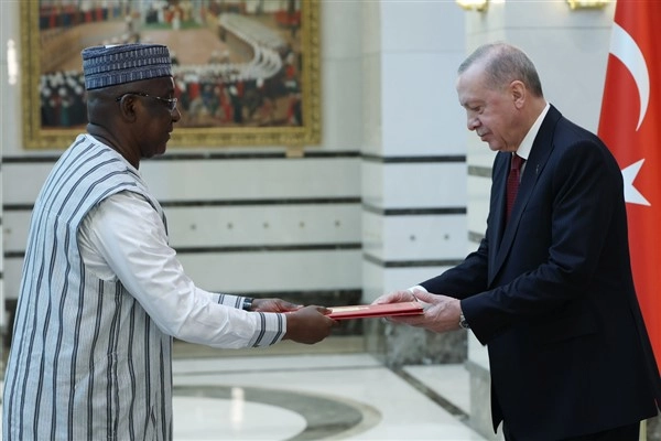 Cumhurbaşkanlığı Külliyesi’nde gerçekleştirilen törende Gine Büyükelçisi Abdoulaye Fofana, Cumhurbaşkanı Recep Tayyip Erdoğan’a güven mektubunu sundu.