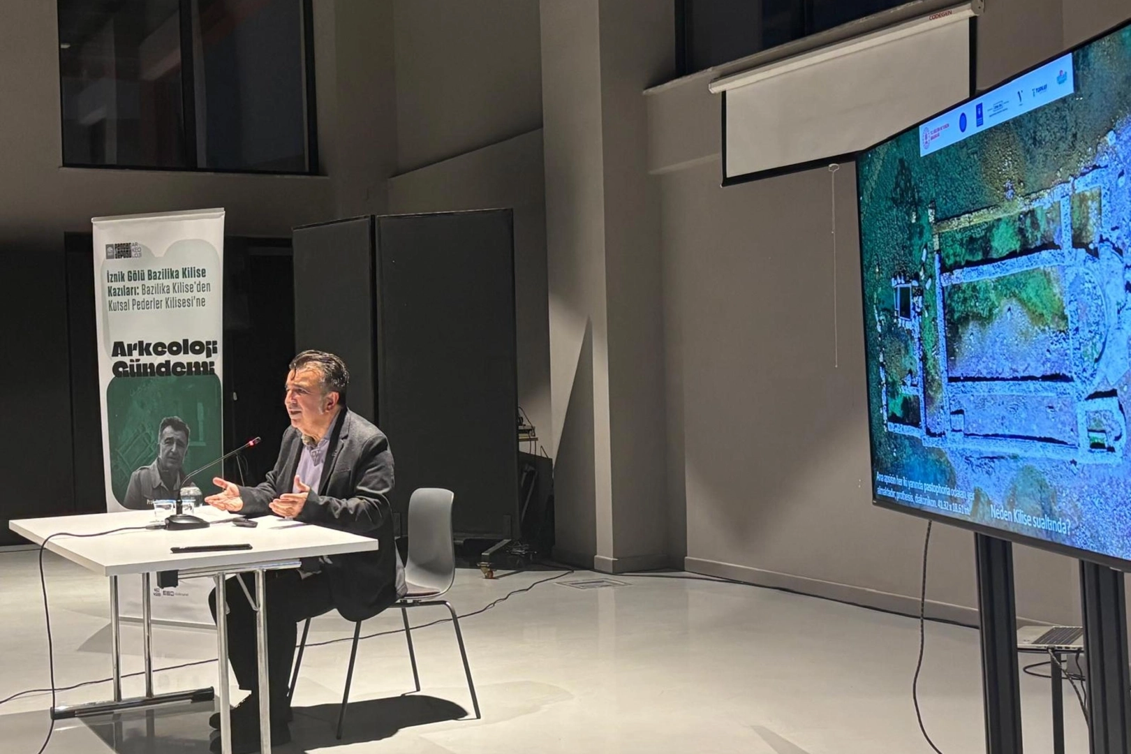 Nilüfer Belediyesi’nin tarih ve arkeoloji meraklılarını bir araya getirdiği Pancar Deposu’ndaki Arkeoloji Gündemi söyleşileri devam ediyor. Bu ayki buluşmada Bursa Uludağ Üniversitesi Arkeoloji Bölümü Anabilim Dalı Başkanı Prof. Dr. Mustafa Şahin, 2014 yılında bir hava fotoğrafıyla tesadüfen keşfedilen İznik Gölü’ndeki tarihi bazilikayı ve kentin tarihsel katmanlarını anlattı. Etkinlikte, su altındaki yapının Hristiyanlık dünyası için bir dönüm noktası sayılan Birinci İznik Konsili ile olan bağı güncel veriler eşliğinde ele alındı.