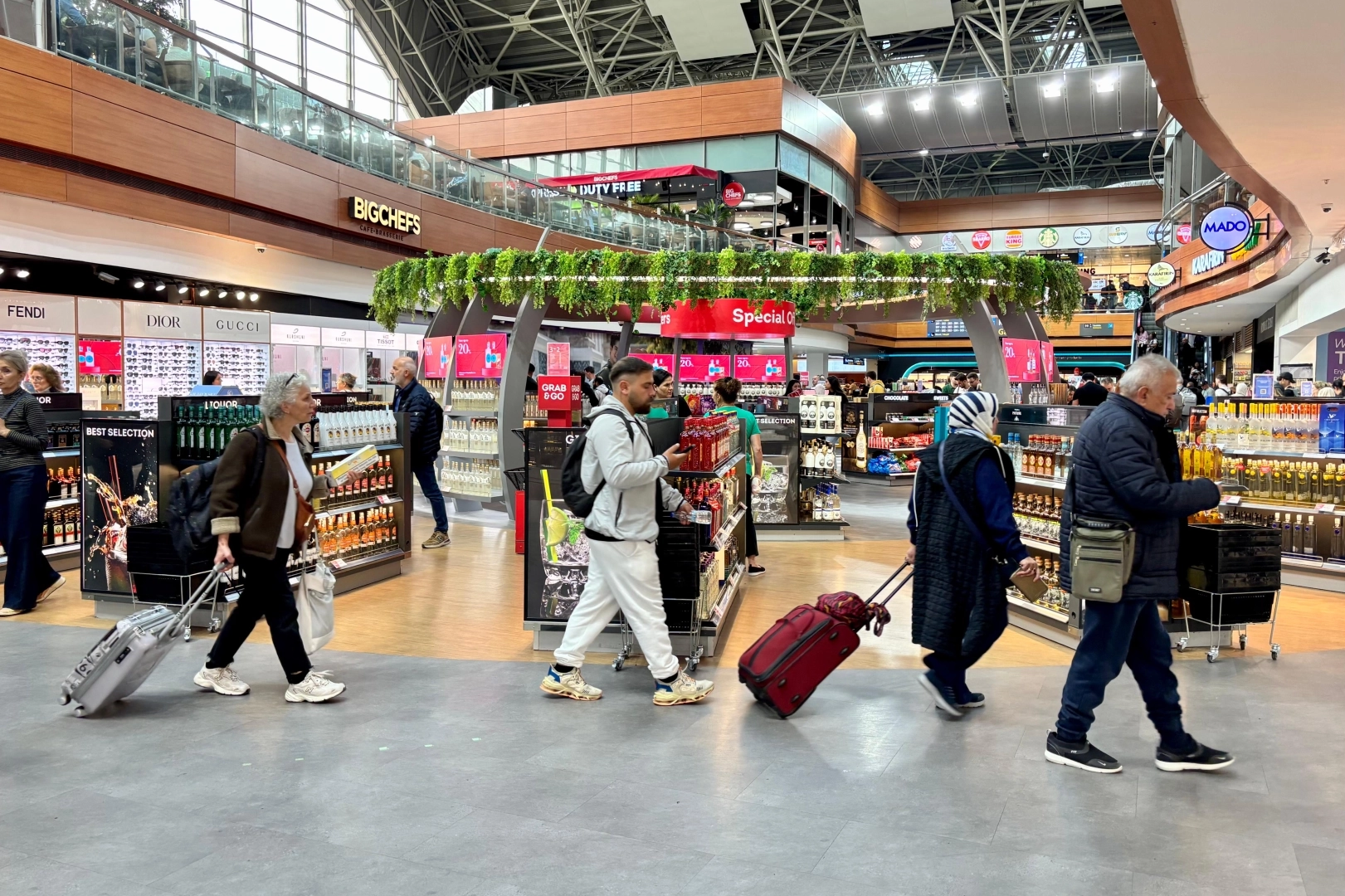 Geniş alanın verdiği rahatlık hissiyle birlikte konforlu bir alışveriş deneyimine olanak tanıyan dört bir yanı açık yeni alan, uçağa gidişte havalimanının artan yolcu kapasitesine ve dinamik yapısına uygun modern bir atmosfer sağlıyor.